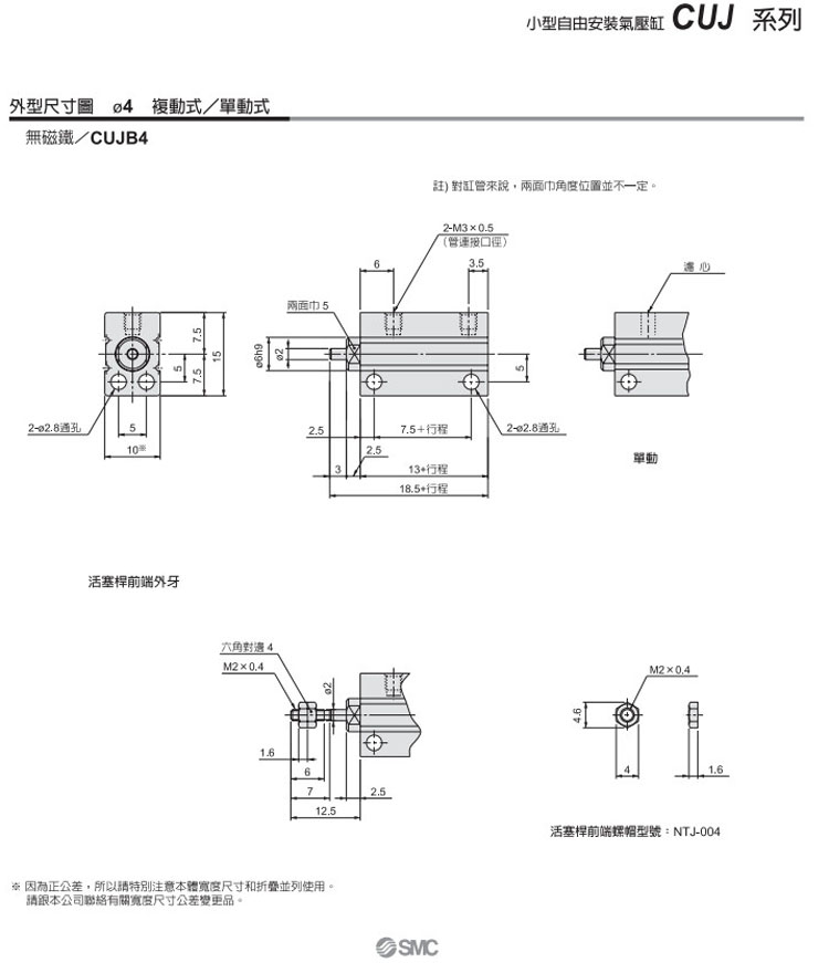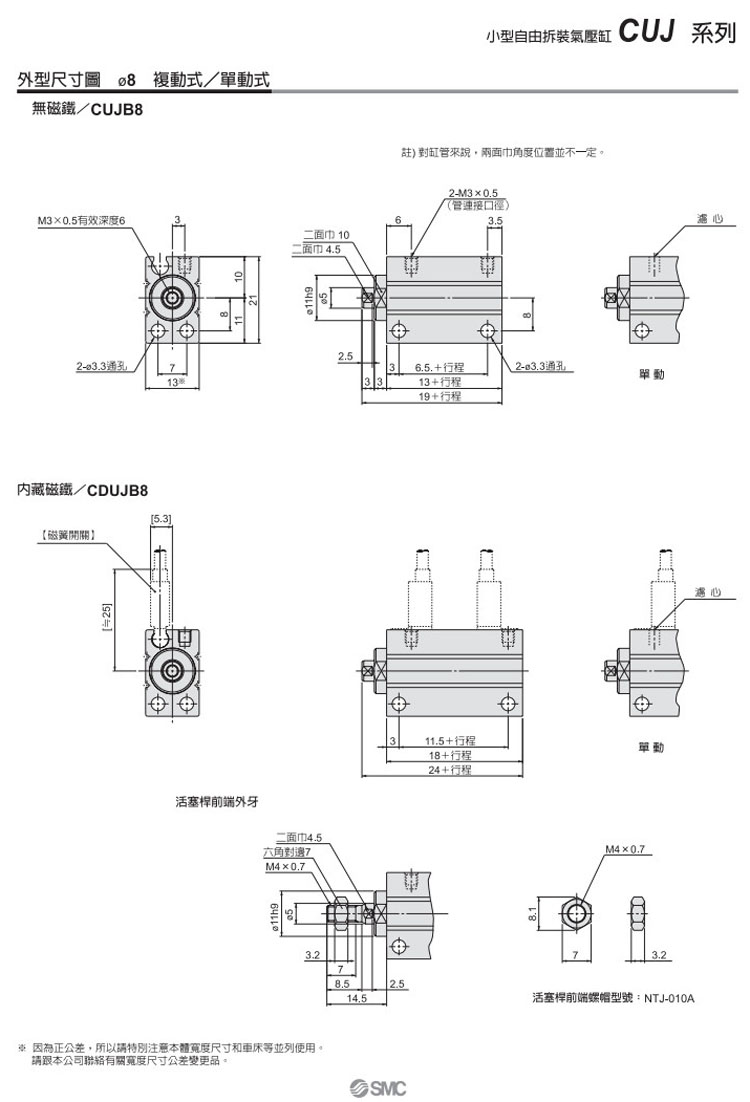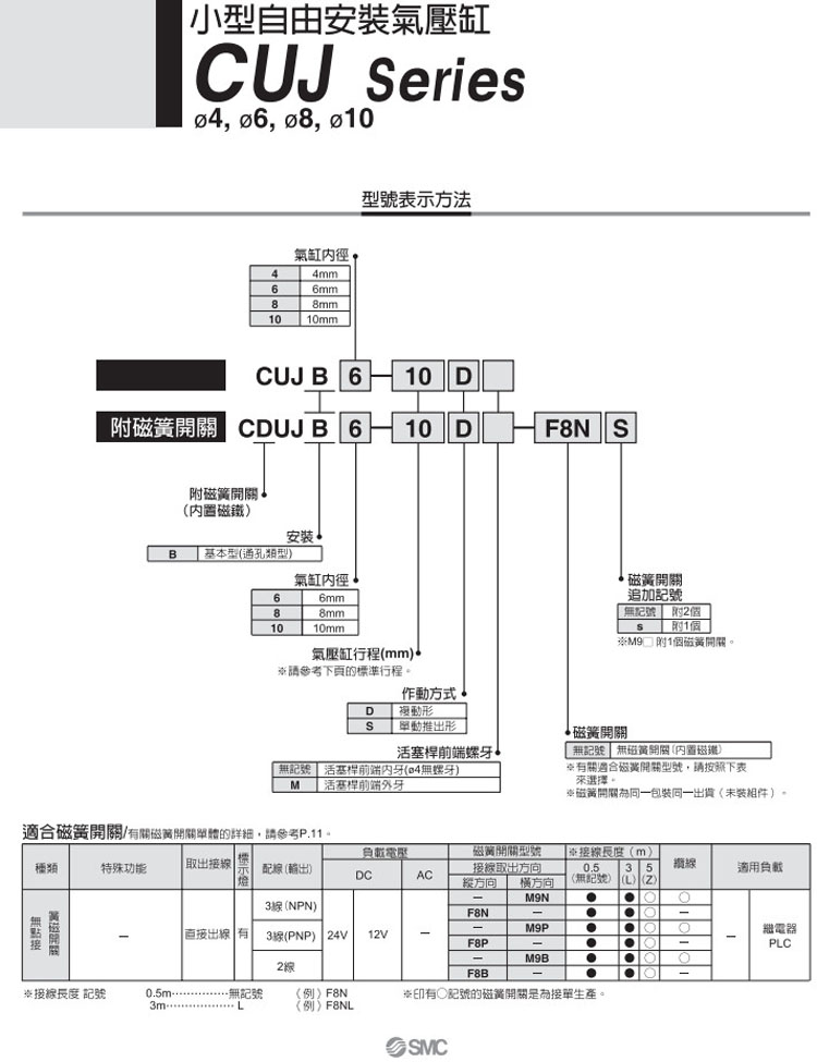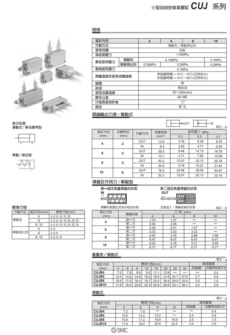 CUJB4-4D,CUJB6-4D,CUJB8-4D,CUJB10-4D,CDUJB6-4D,CDUJB8-4D,CDUJB10-4D,SMC自由安裝型氣缸