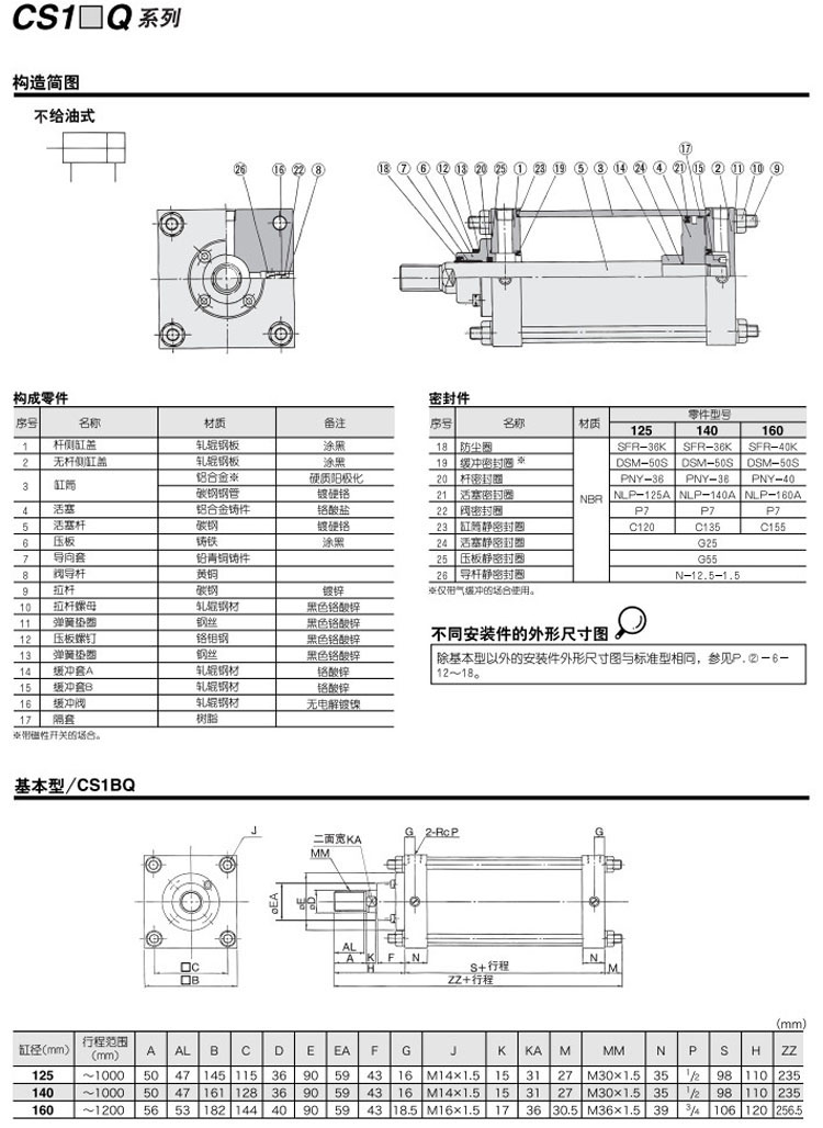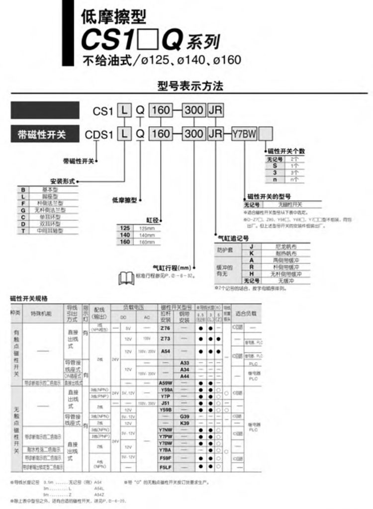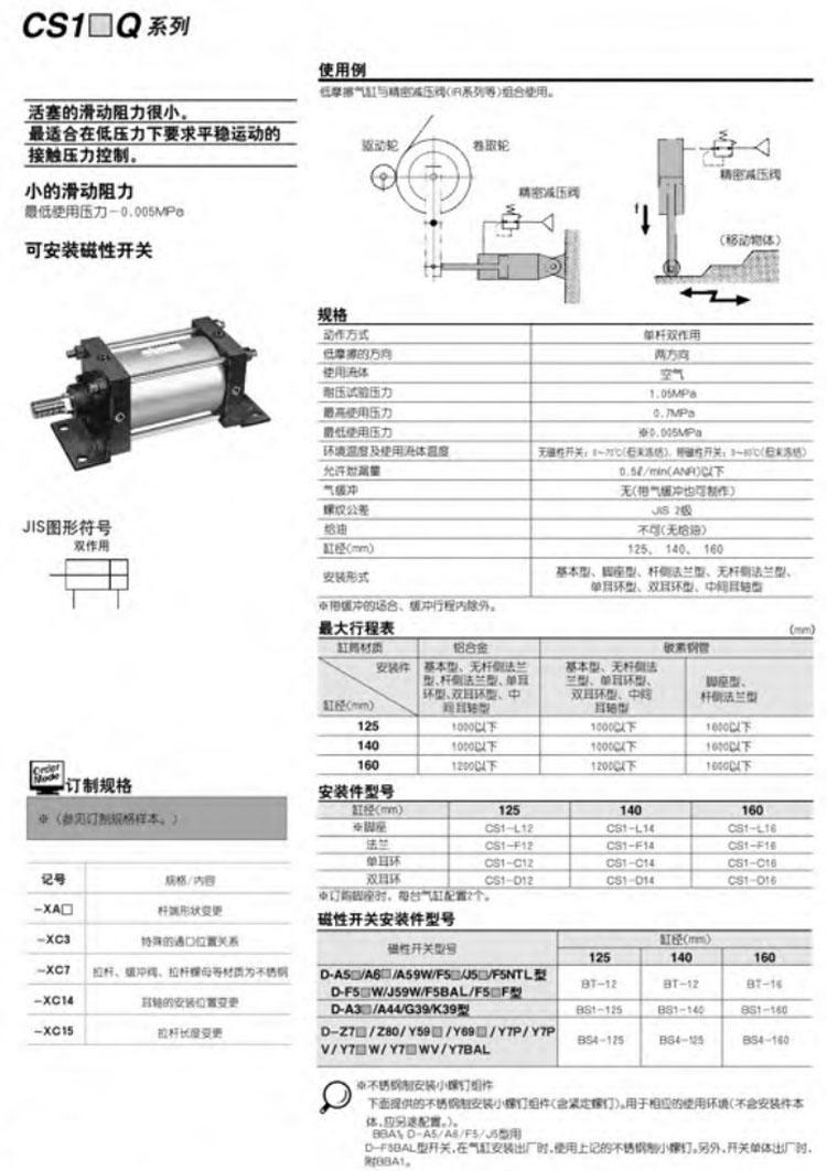 CS1BQ125-300,CS1LQ125-300,CS1FQ125-300,CS1GQ125-300,CS1CQ125-300,CS1DQ125-300,CS1TQ125-300,SMC低摩擦型氣缸