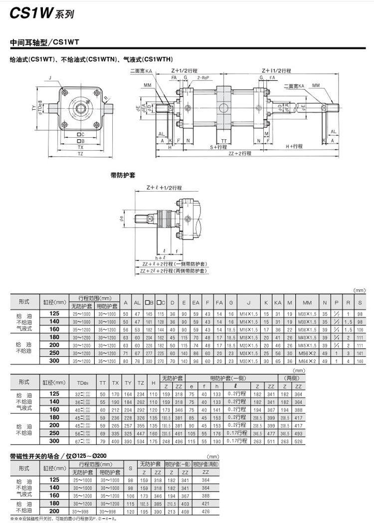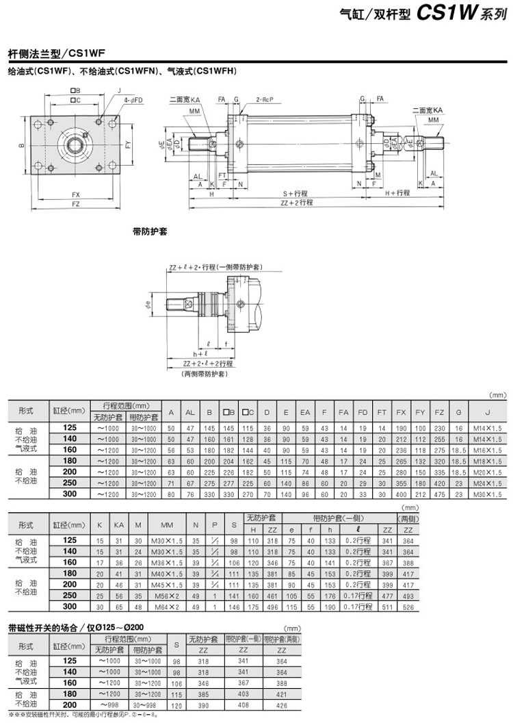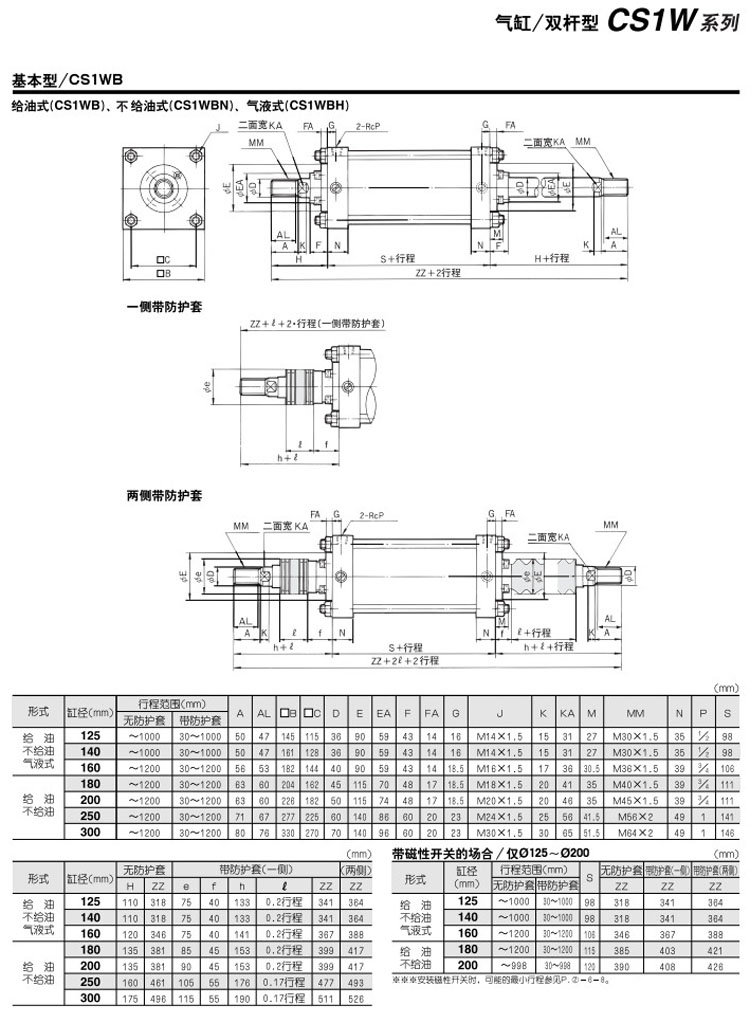 CS1WB125-100,CS1WL125-100,CS1WF125-100,CS1WT125-100,CDS1WB125-100,CDS1WL125-100,CDS1WF125-100,CDS1WT125-100,SMC雙桿型氣缸