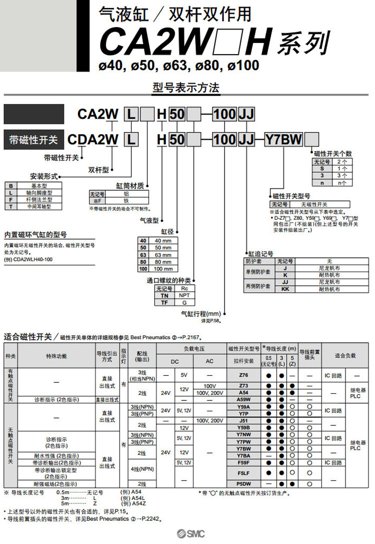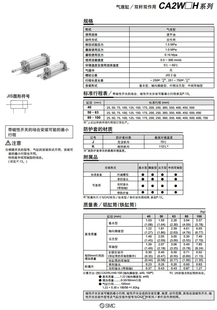 CDA2WLH50-600,CDA2WLH63-600,CDA2WLH80-600,CDA2WLH100-600,CDA2WFH50-600,CDA2WFH63-600,CDA2WFH80-600,SMC雙桿雙作用氣液缸