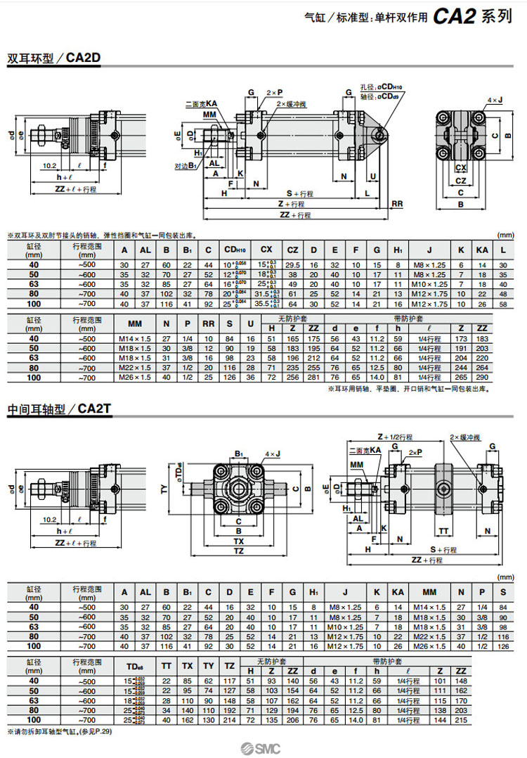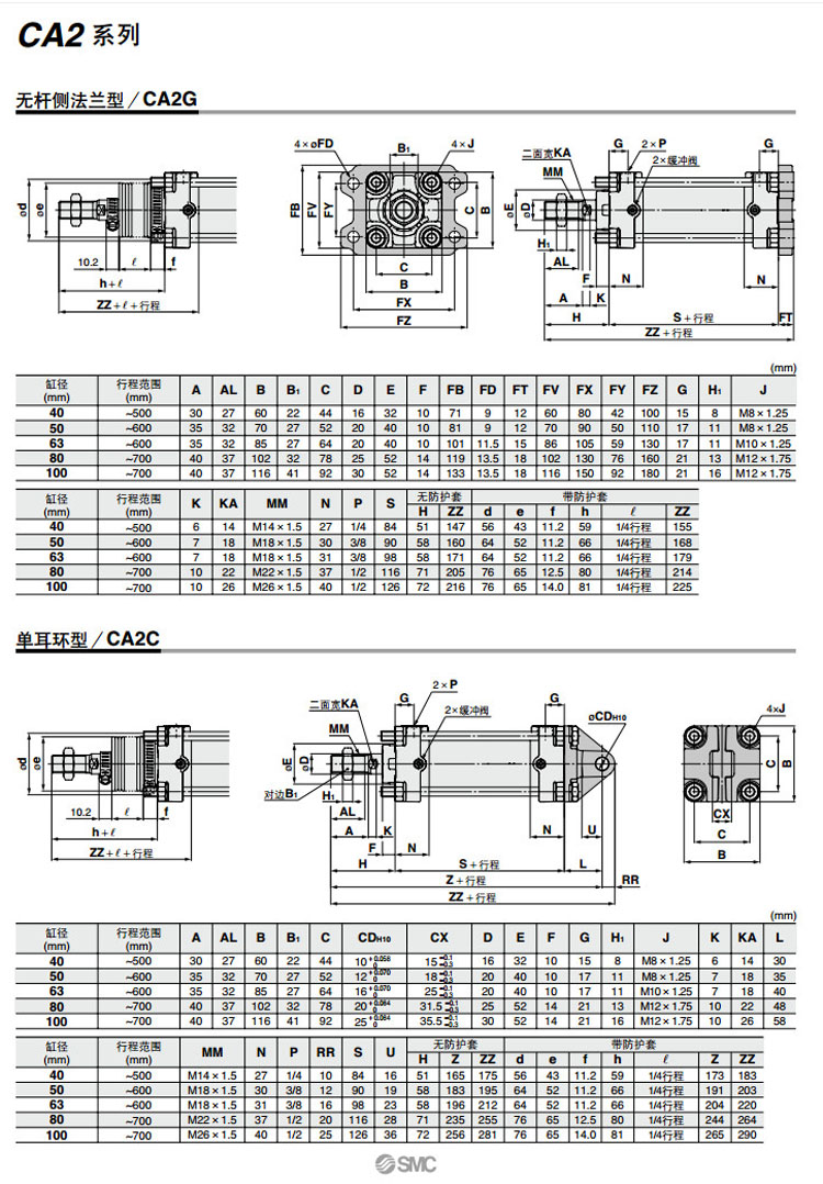CDA2L80-700,CDA2L100-700,CDA2F80-700,CDA2F100-700,CDA2G80-700,CDA2G100-700,CDA2C80-700,CDA2C100-700,SMC標準型氣缸