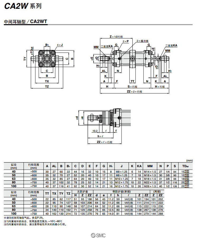 CDA2WF100-300,CDA2WF100-350,CDA2WF100-400,CDA2WF100-450,CDA2WF100-500,CDA2WF100-600,CDA2WF100-700,SMC標準型氣缸
