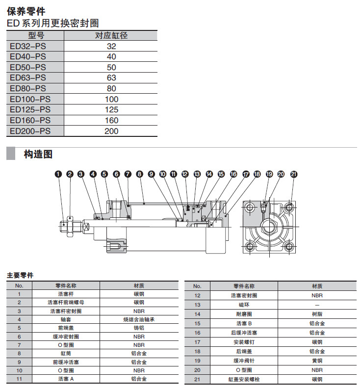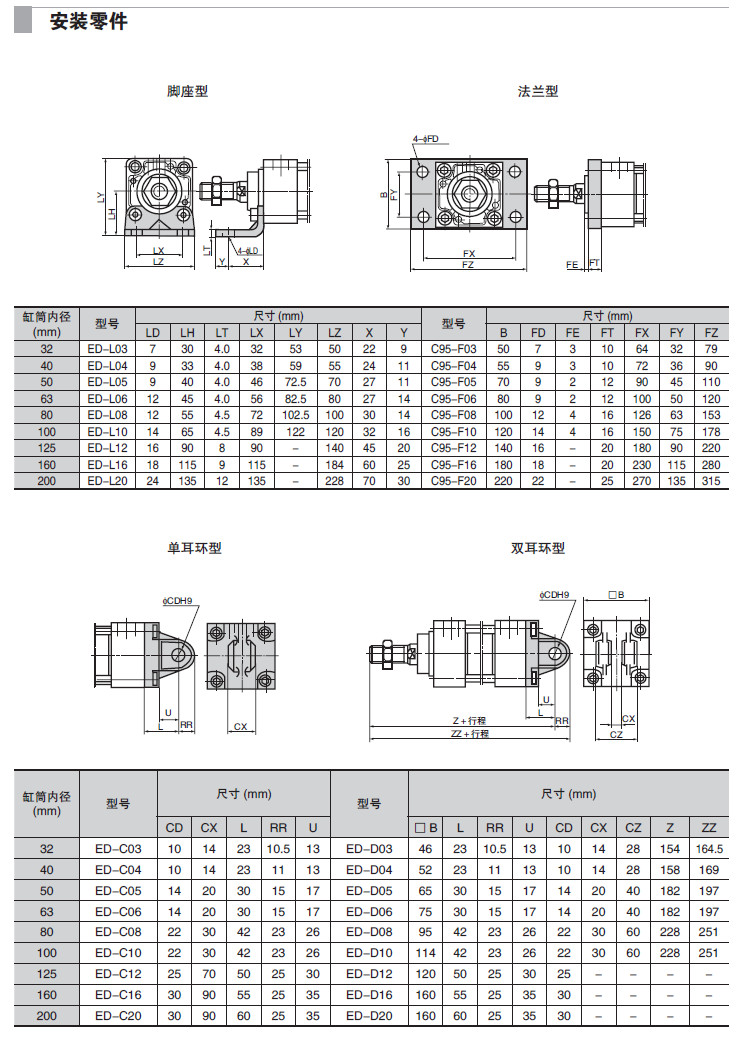 EDWMF-160-25,EDWMF-160-50,EDWMF-160-75,EDWMF-160-100,EDWMF-160-125,EDWMF-160-150,標準型氣缸