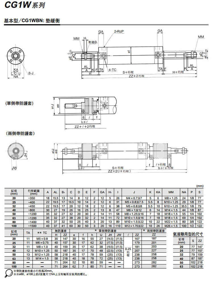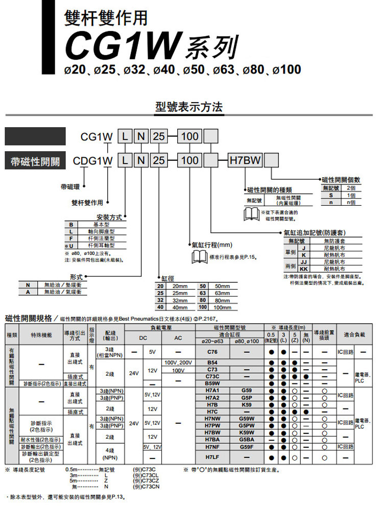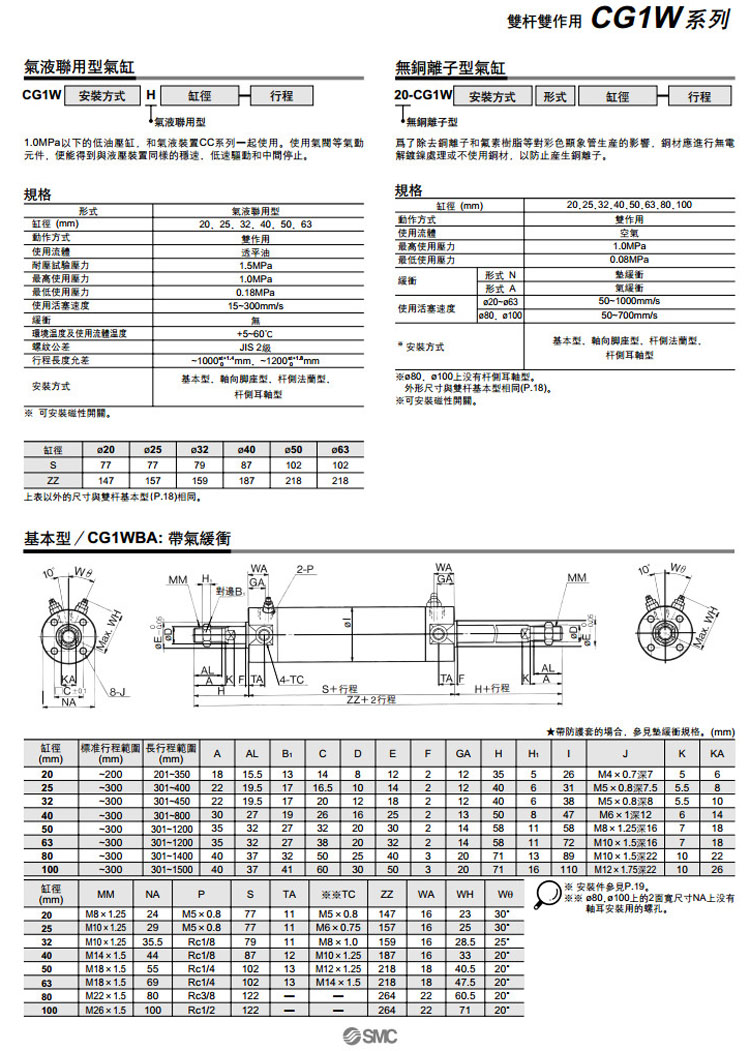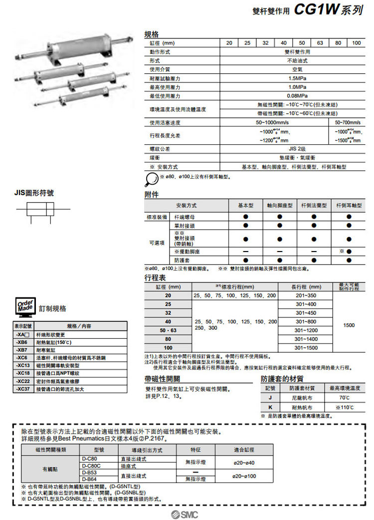 CDG1WLA100-25,CDG1WLA100-50,CDG1WLA100-75,CDG1WLA100-100,CDG1WLA100-125,CDG1WLA100-150,SMC雙桿雙作用氣缸
