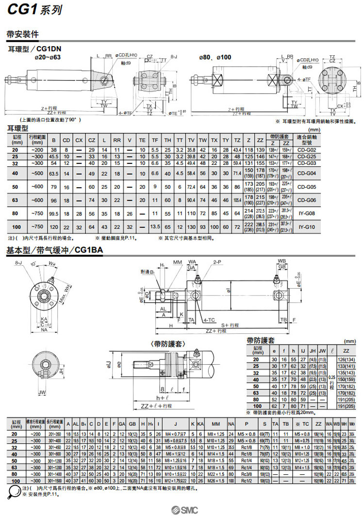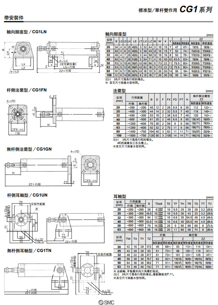 CDG1BN20,CDG1LN20,CDG1FN20,CDG1LA20,CDG1FA20,CDG1GN20,CDG1UN20,CDG1TN20,CDG1DN20,SMC標準型氣缸