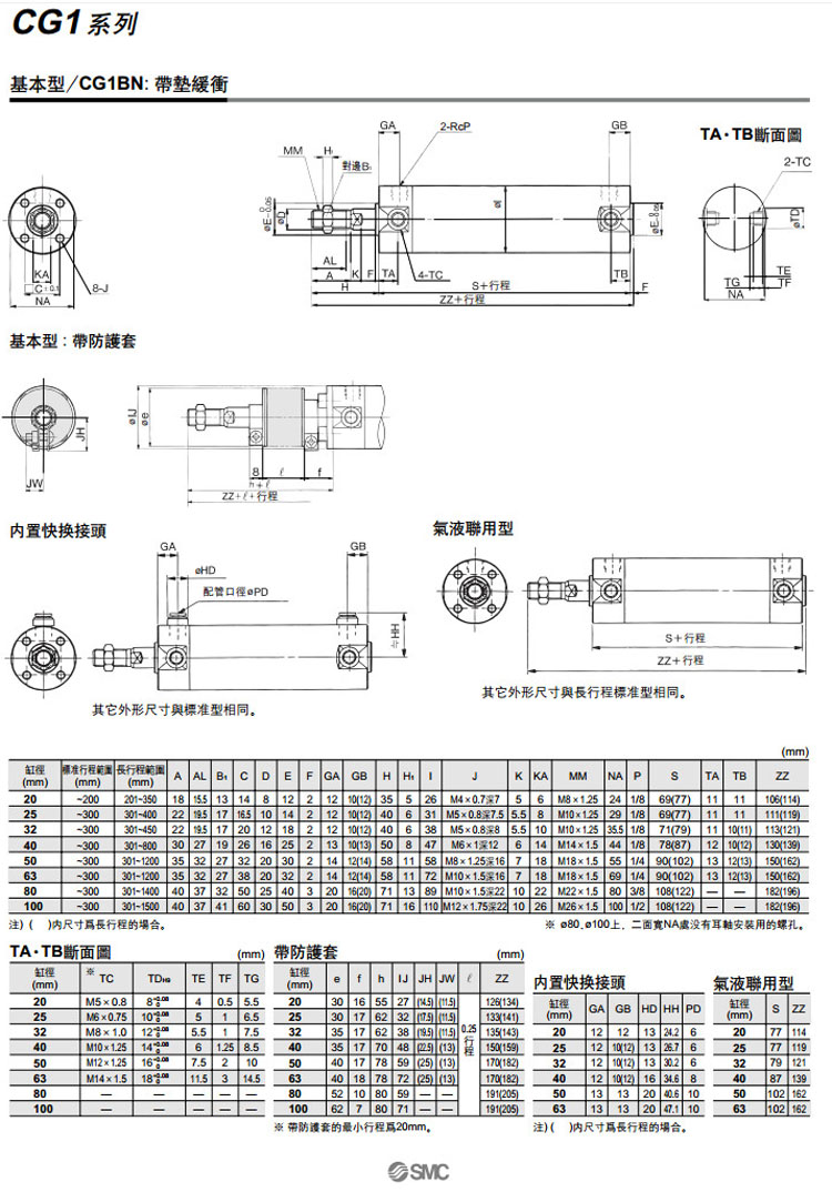 CG1UA20-25,CG1UA20-50,CG1UA20-75,CG1UA20-100,CG1UA20-125,CG1UA20-150,CG1UA20-200,SMC標準型氣缸