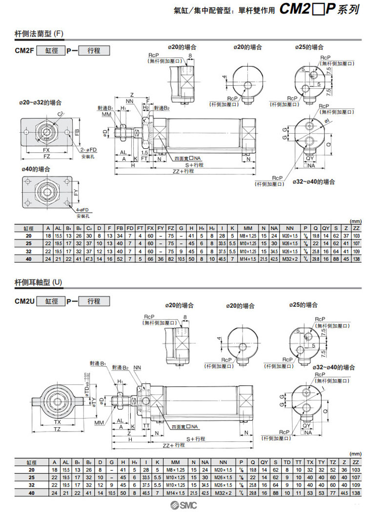 CM2B20P-25,CM2F20P-25,CM2U20P-25,CDM2B20P-25,CDM2F20P-25,CDM2U20P-25,SMC集中配管型氣缸