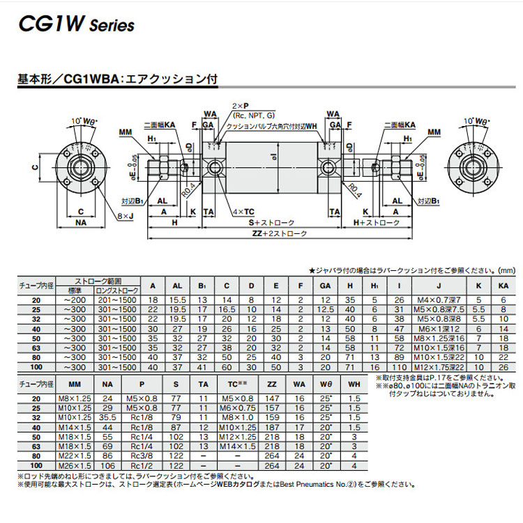 CG1WLA100-25Z,CG1WLA100-50Z,CG1WLA100-75Z,CG1WLA100-100Z,CG1WLA100-125Z,CG1WLA100-150Z,CG1WLA100-200Z,SMC雙桿雙作用氣缸
