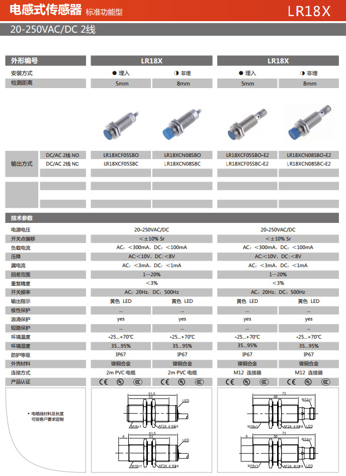 LR18XCF05SBO,LR18XCF05SBC,LR18XCN08SBO,LR18XCN08SBC,LR18XCF05SBO-E2,LR18XCF05SBC-E2,LR18XCN08SBO-E2,LR18XCN08SBC-E2,電感式傳感器