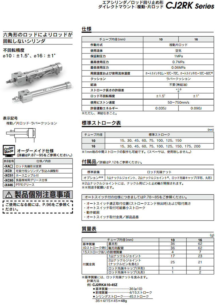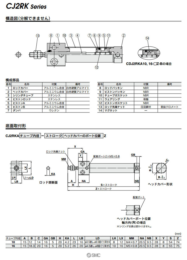 CJ2RKA10,CJ2RKA16,CDJ2RKA10,CDJ2RKA16,CJ2RKA10-15,CDJ2RKA10-15,SMC標準型氣缸