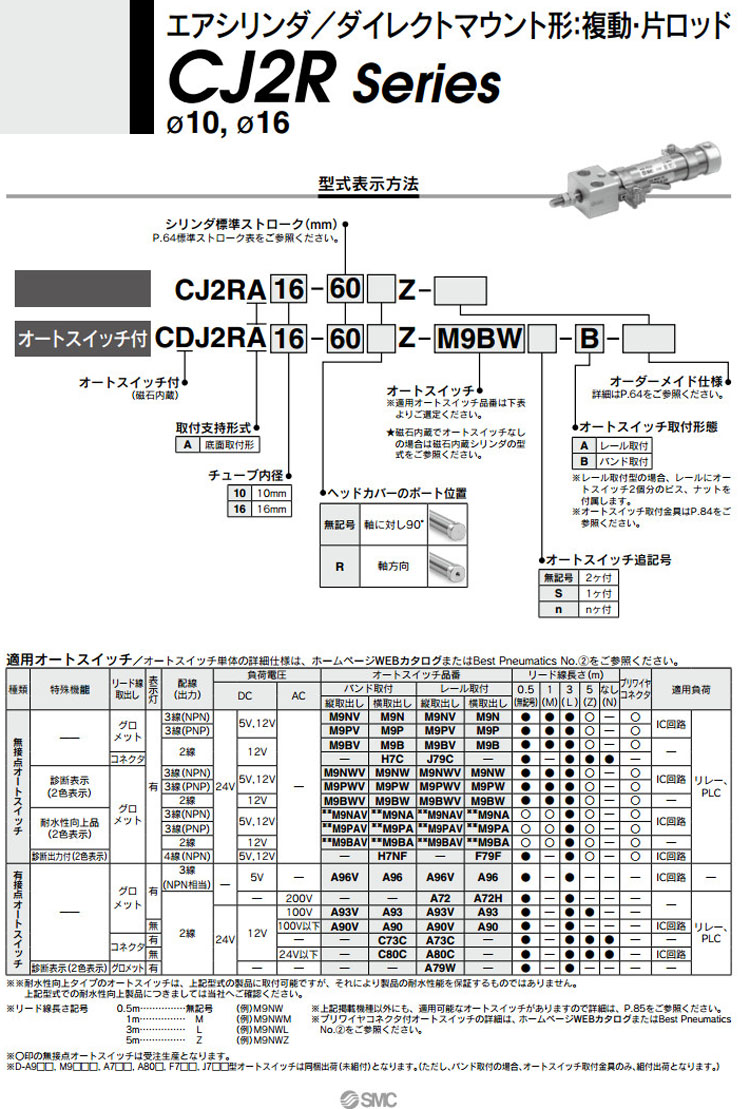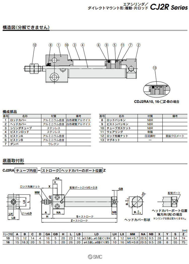 CJ2RA10,CJ2RA16,CDJ2RA10,CDJ2RA16,CJ2RA10-15,CDJ2RA10-15,SMC標準型氣缸