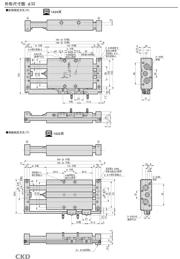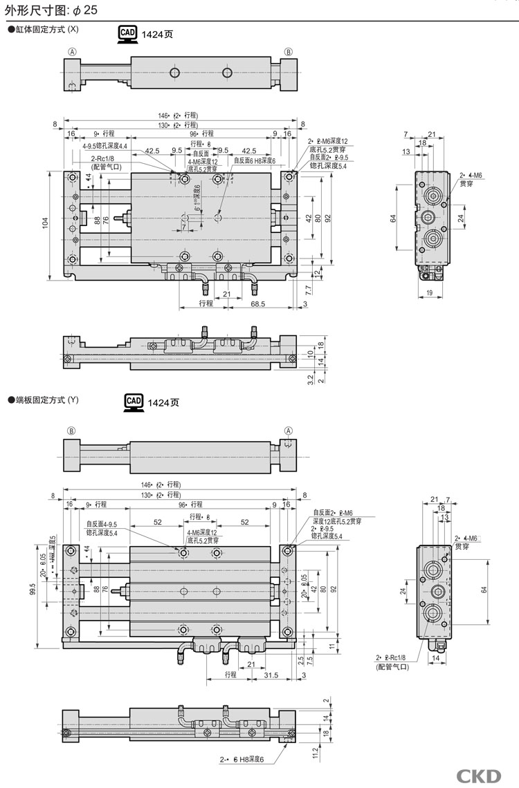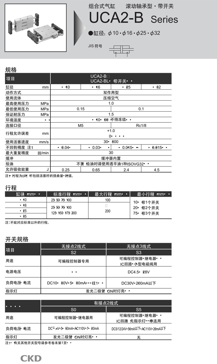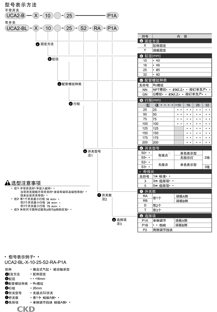 UCA2-B-X-10-25,UCA2-B-Y-10-25,UCA2-BL-X-10-25,UCA2-BL-Y-10-25,CKD組合式氣缸