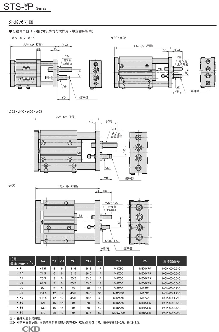 STS-MP-8-10,STS-BP-8-10,STL-MP-8-50,STL-BP-8-50,STS-MP-16-50,CKD帶導桿氣缸
