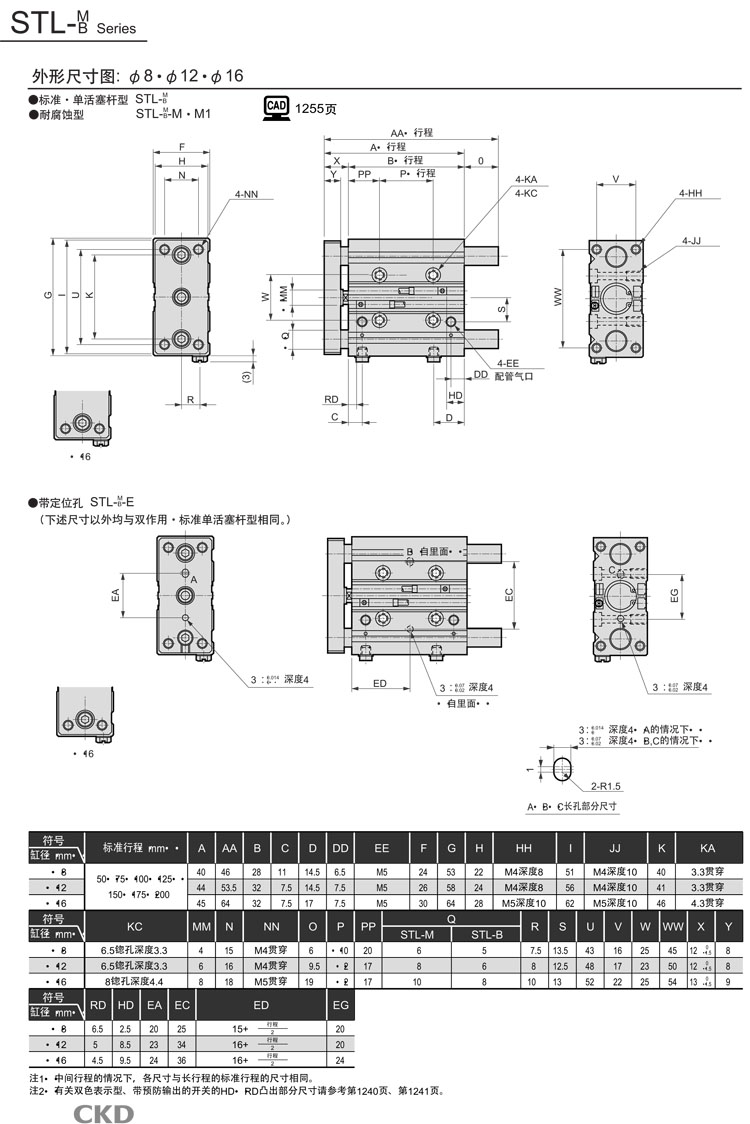 STS-MF-8-10,STS-BF-8-10,STL-MF-8-50,STS-BF-8-50,STS-MF-8-20,CKD帶導桿氣缸