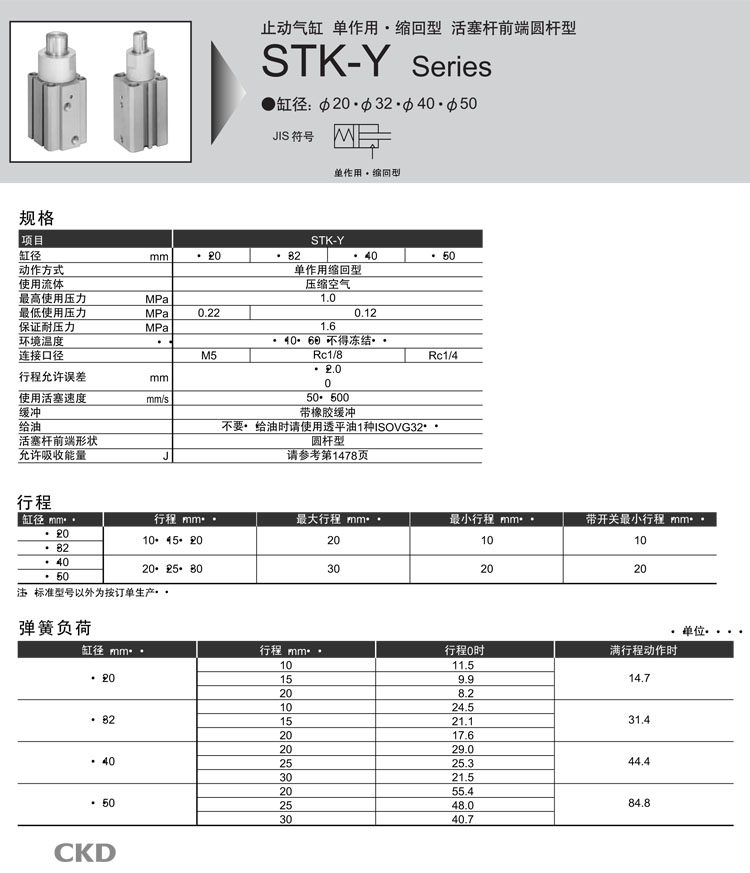 STK-Y-20-10,STK-Y-32-10,STK-Y-40-20,STK-Y-50-20,STK-Y-20-15,STK-Y-40-25,CKD止動(dòng)氣缸