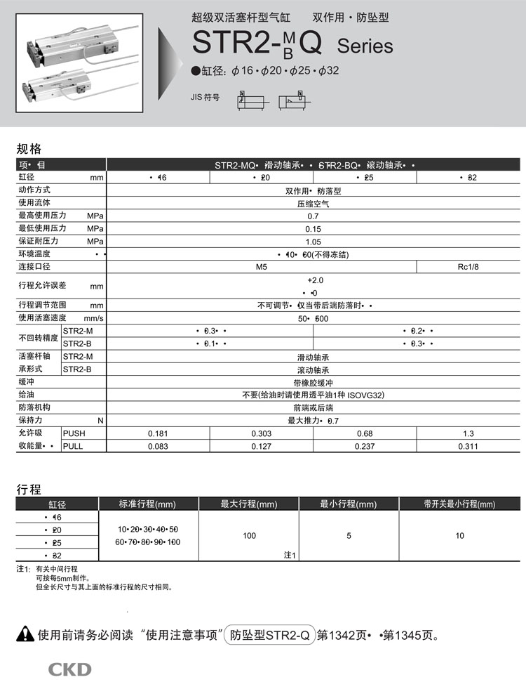STR2-MQ-16,STR2-MQ-20,STR2-MQ-25,STR2-MQ-32,STR2-BQ-16,STR2-BQ-20,STR2-BQ-25,STR2-BQ-32,CKD雙活塞桿型氣缸