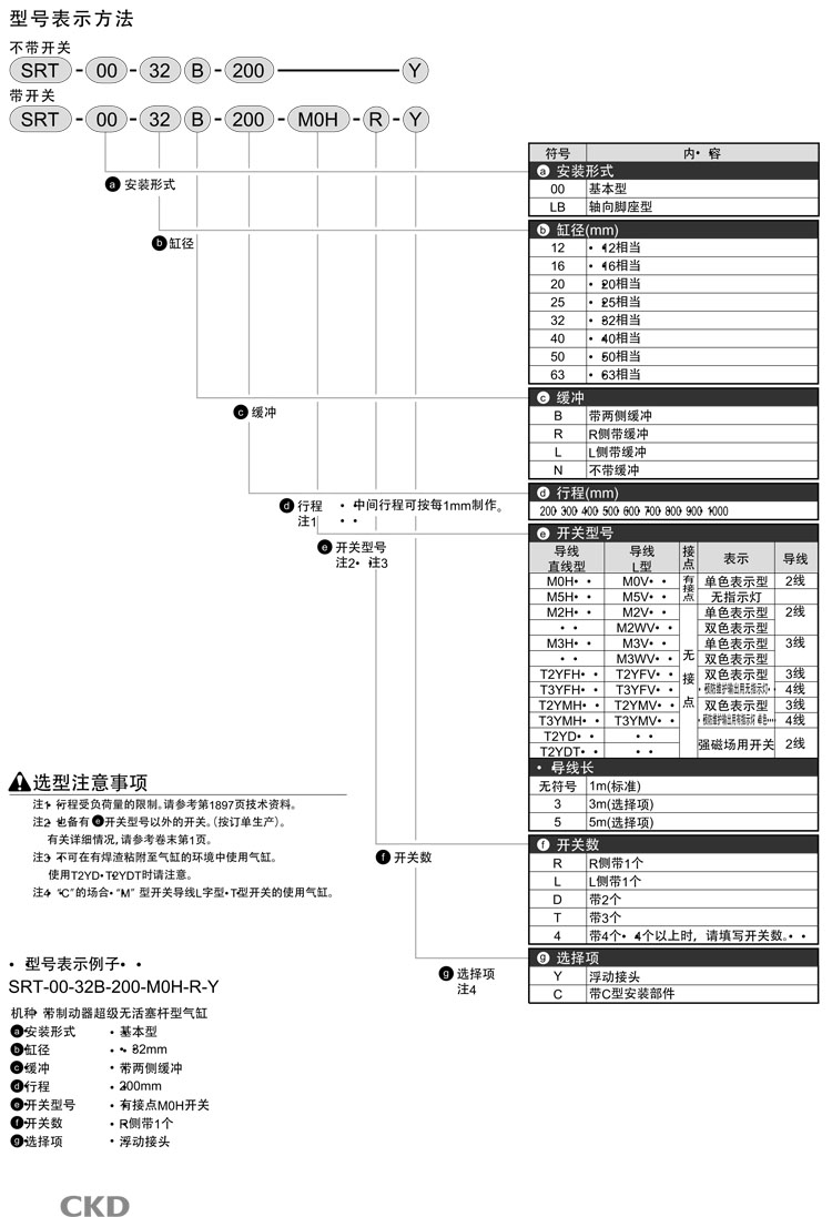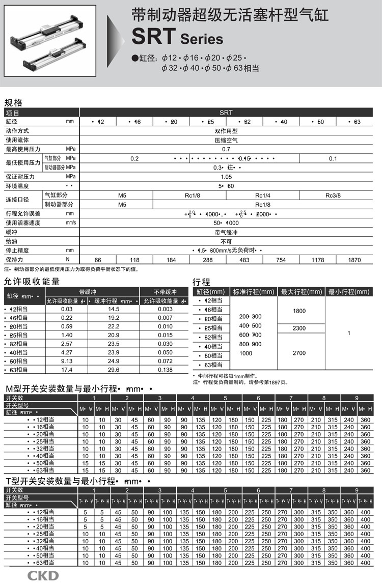 SRT-00-12B-200,SRT-LB-12B-200,SRT-LB-63B-700,SRT-00-63B-1000,CKD無(wú)活塞桿型氣缸