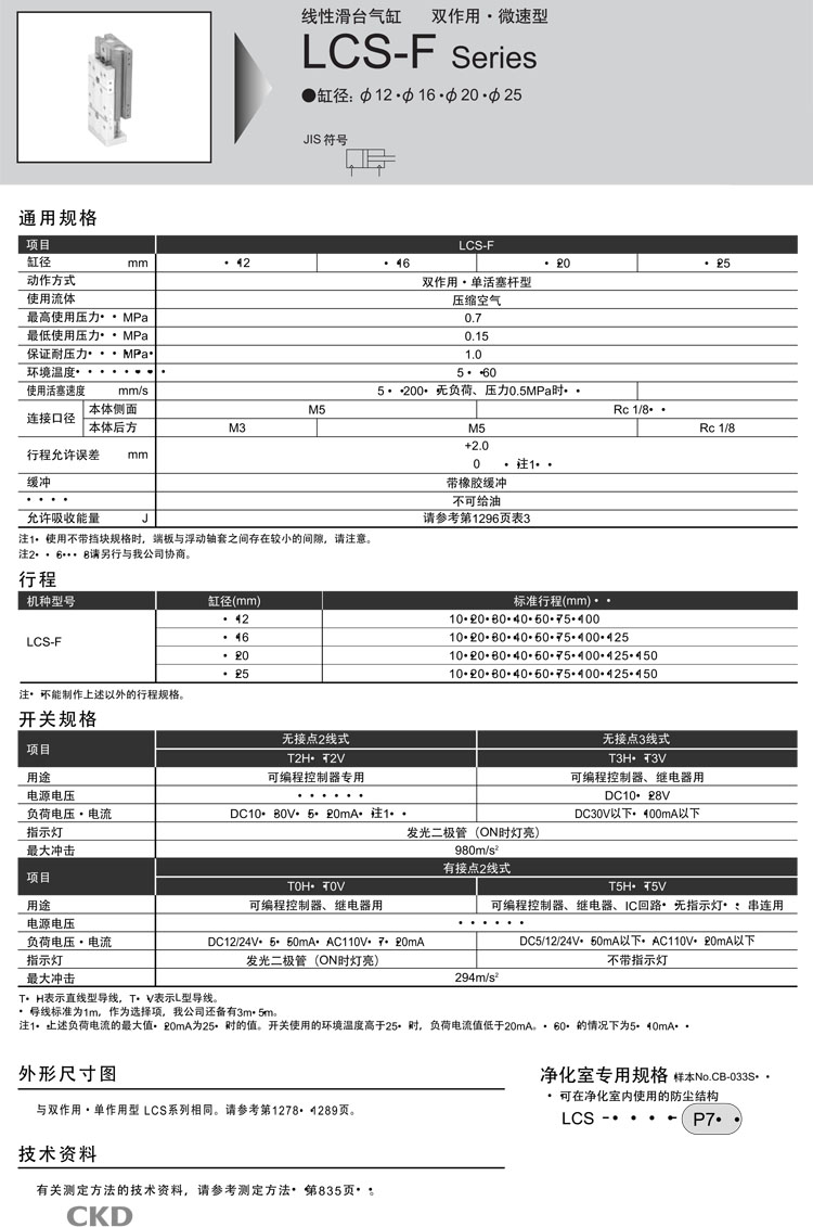 LCS-F-12-10,LCS-F-16-10,LCS-F-20-10,LCS-F-25-10,LCS-F-12-20,CKD線(xiàn)性滑臺氣缸