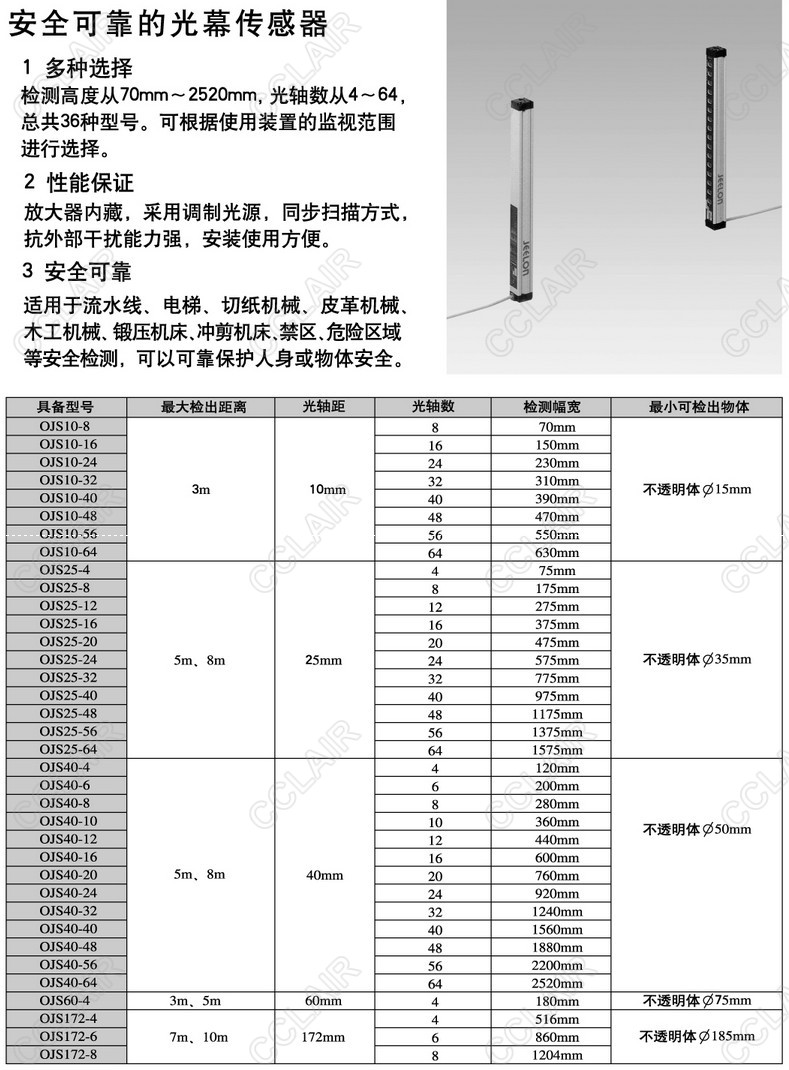 O10-8,O10-16,O10-24,O10-32,O10-40,O10-48,O10-56,O10-64,O25-4,O安全光幕傳感器