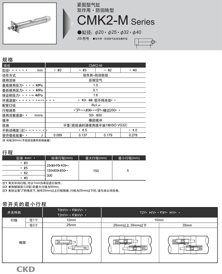 CMK2-M-TA-40-250,CMK2-M-TA-40-300,CMK2-M-TB-40-25,CMK2-M-TB-40-50,CMK2-M-TB-40-75,CMK2-M-TB-40-100,CKD緊固型氣缸