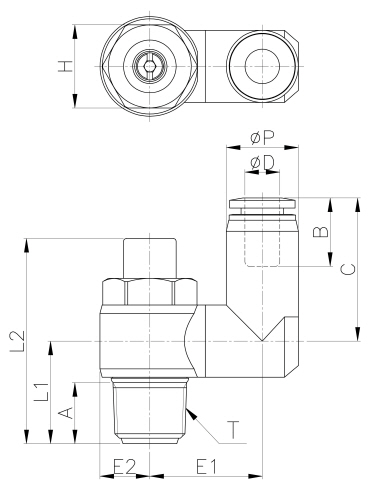 | Model | ¢D | ¢P | T | L1 | L2 | E1 | E2 | A | B | H(Hex) | C | WEIGHT(g) | BOX(EA) |