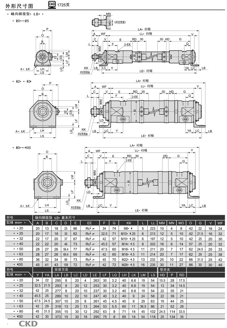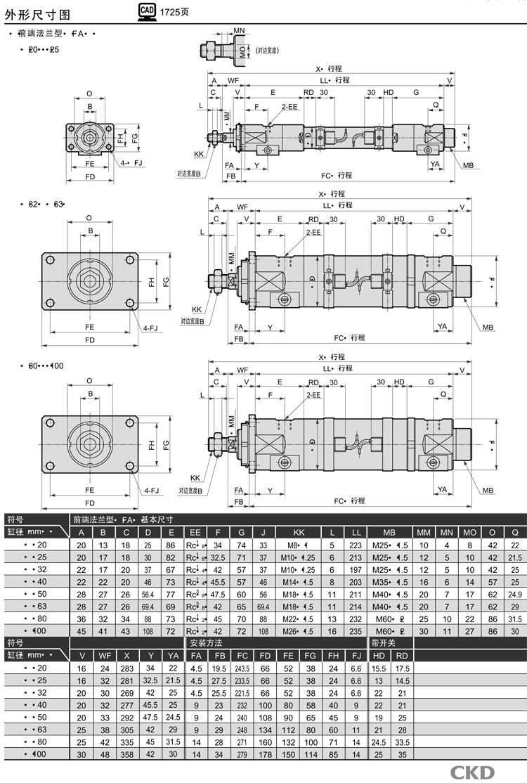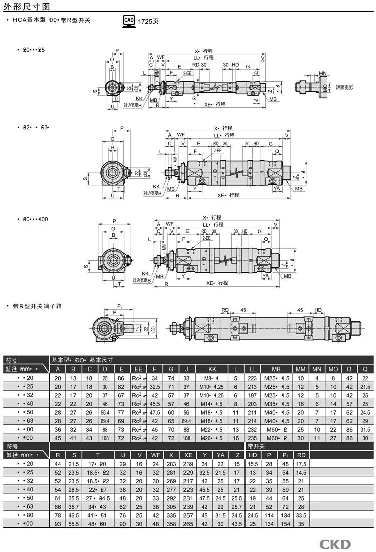 HCA-00-20B-400,HCA-LB-20B-400,HCA-FA-20B-400,HCA-FB-20B-400,CKD高速型氣缸