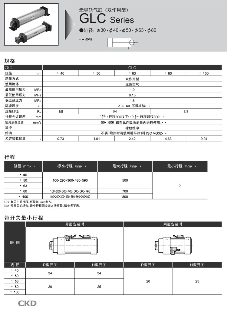 GLC-00,GLC-LB,GLC-FA,GLC-FB,GLC-L2-00,GLC-L2-LB,GLC-L2-FA,GLC-L2-FB,GLC-00-100-700,CKD無(wú)導軌氣缸