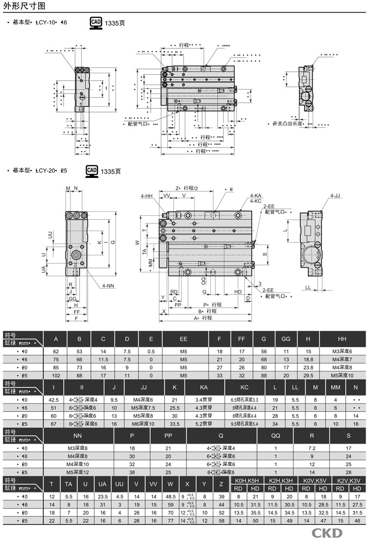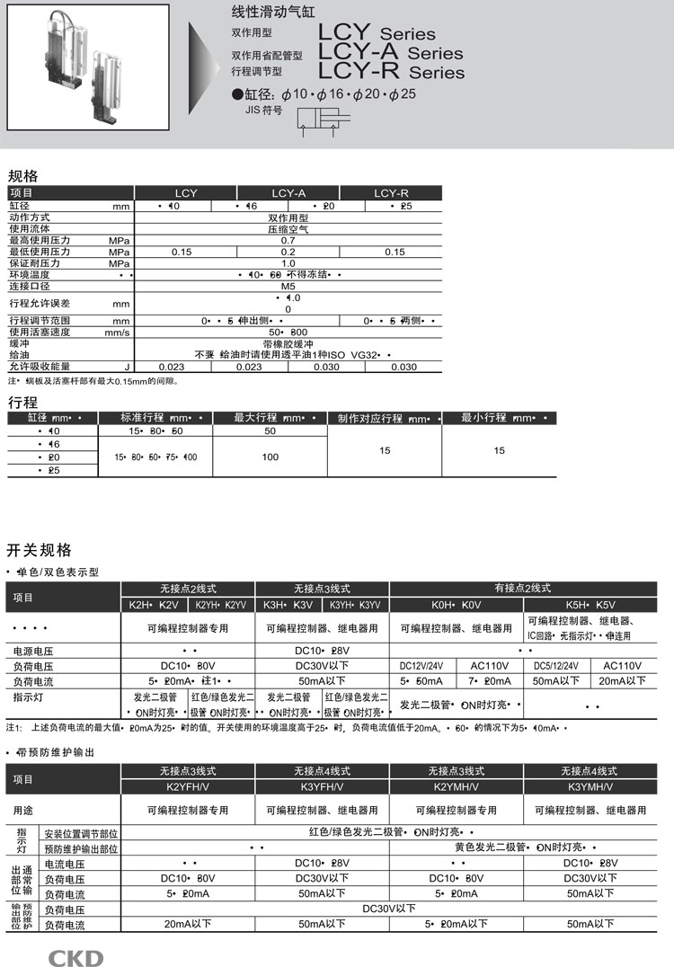 LCY-10,LCY-16,LCY-20,LCY-Y-25,LCY-25,LCY-A-10,LCY-A-16,LCY-A-20,CKD線(xiàn)性滑動(dòng)氣缸