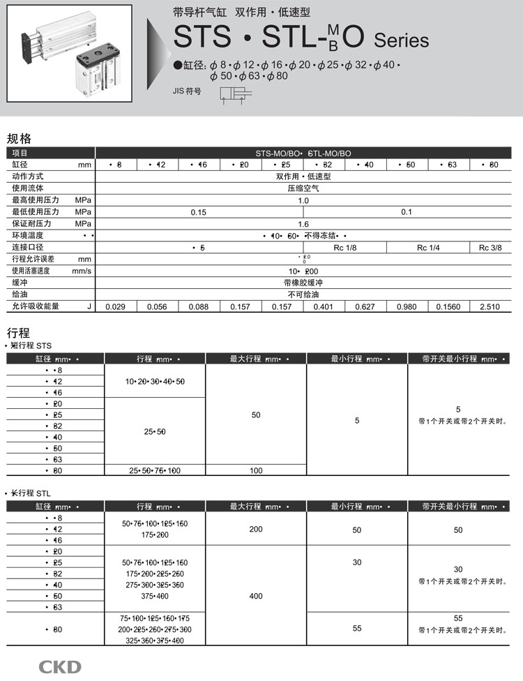 STS-MO-8-10,STS-MO-8-20,STS-MO-8-30,STS-MO-8-40,STS-MO-8-50,CKD帶導桿氣缸