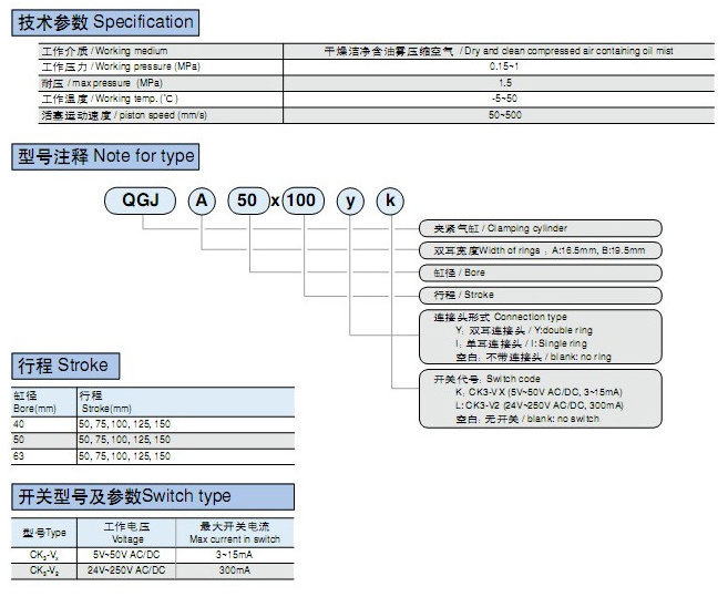 QGJA40×100,QGJA40×125,QGJA40×150,QGJA50×100,QGJA50×125,QGJA50×150,QGJA63×75,QGJA63×100,