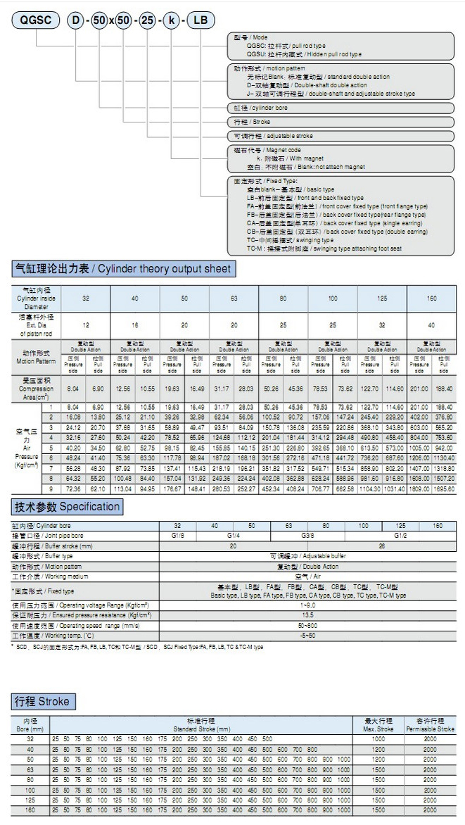 QGSU-160×450,QGSU-160×500,QGSU-160×500,QGSU-160×600,QGSU-160×700,QGSU-160×800,QGSU-160×900,標準缸