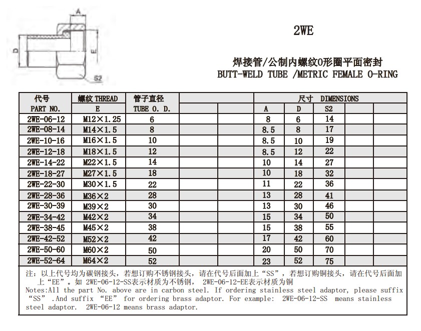 2WE-30-39,2WE-34-42,2WE-38-45,2WE-42-52,2WE-50-60,2WE-52-64,