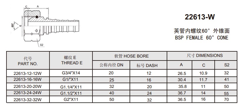 22613-12-12W,22613-16-16W,22613-20-20W,22613-24-24W,22613-32-32W,扣壓式軟管接頭