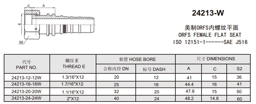24213-12-12W,24213-16-16W,24213-20-20W,24213-24-24W,扣壓式軟管接頭