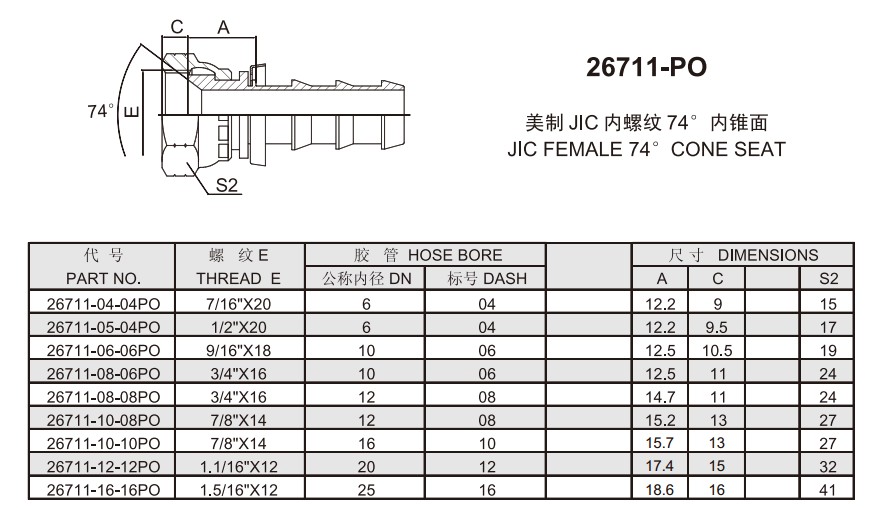26711-06-06PO,26711-08-08PO,26711-10-10PO,26711-16-16PO,