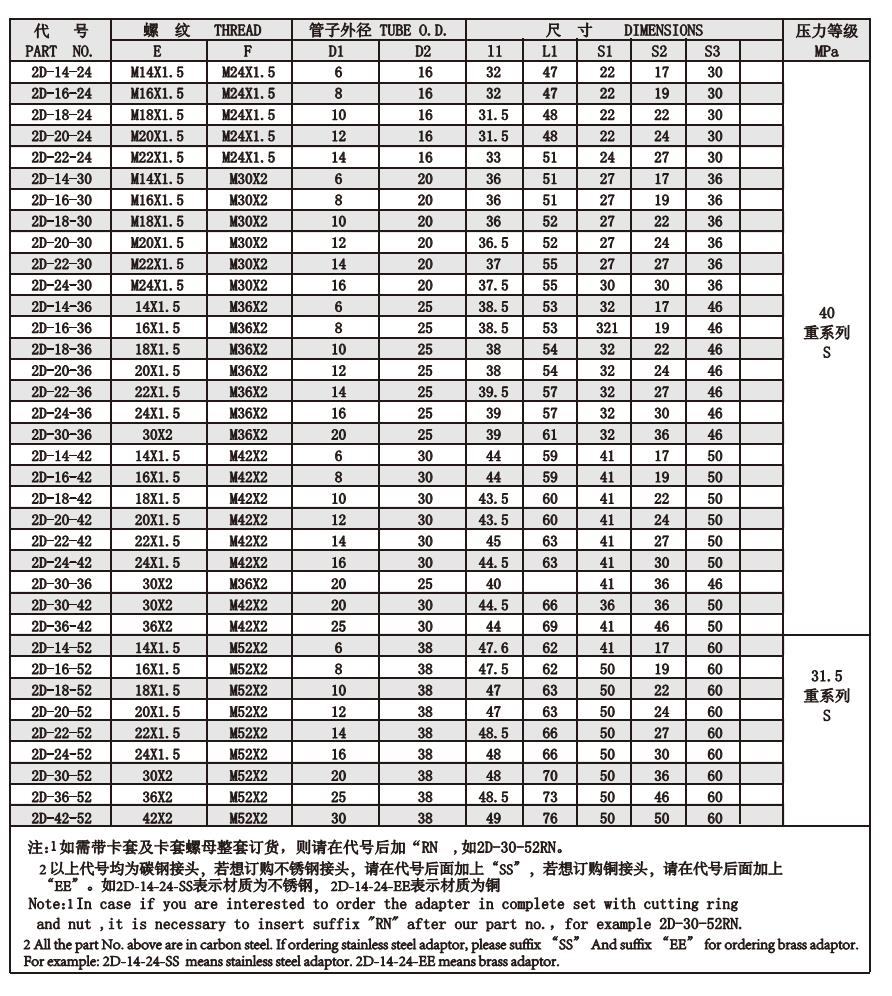2D-14-16,2D-16-18,2D-18-20,2D-20-22,2D-30-36,2D-36-52,2D-42-52,內螺紋轉換接頭