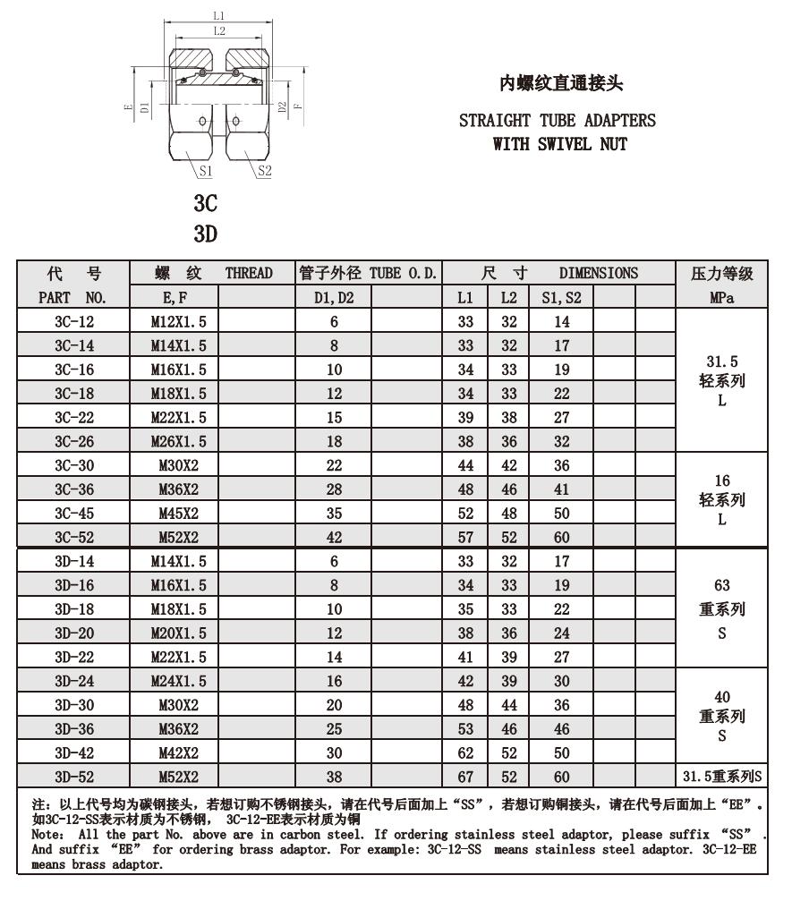 3C-12,3C-26,3C-30,3C-36,3C-45,3C-52,3D-14,3D-24,3D-30,3D-36,3D-42,3D-52,內螺紋直通接頭