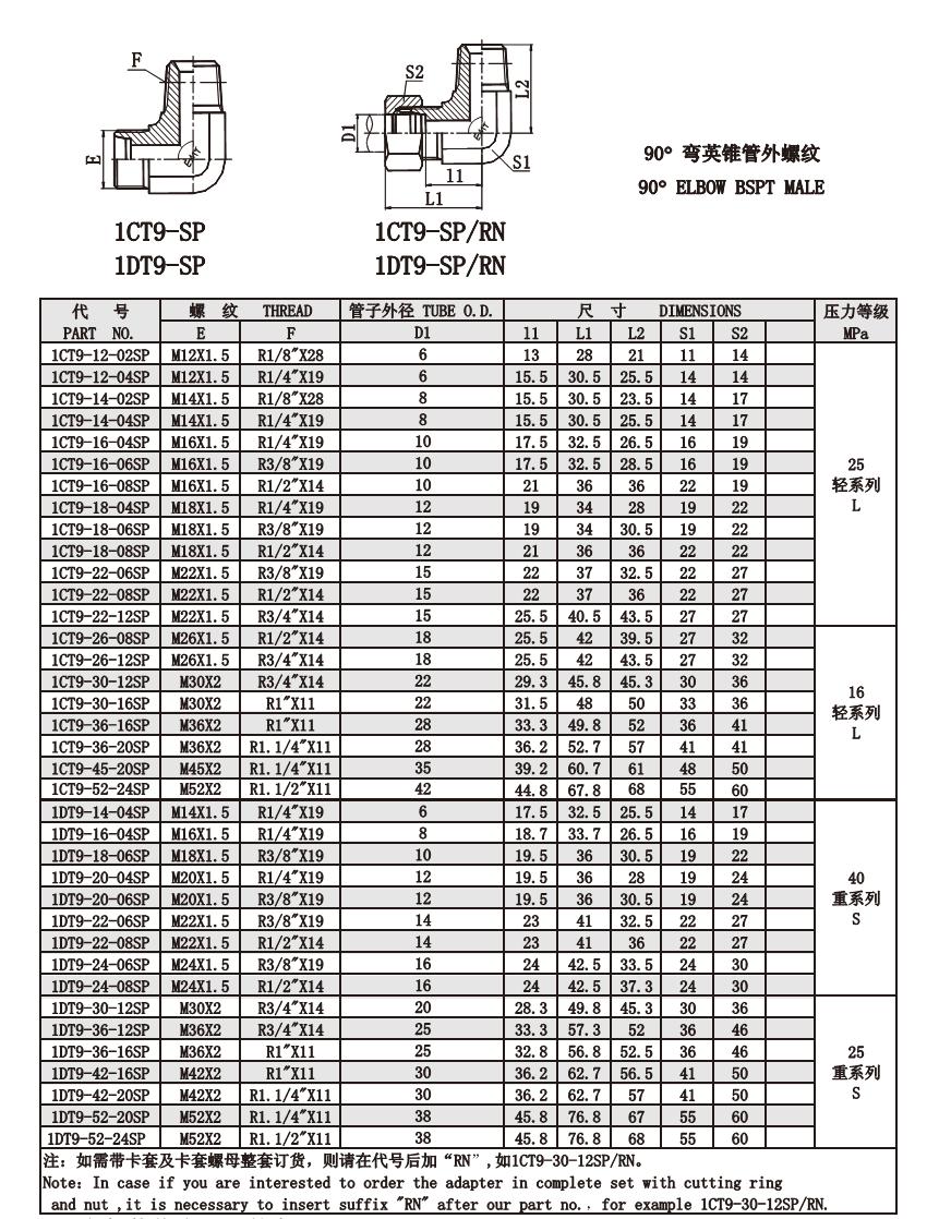 1CT9-12-02SP,1CT9-14-02SP,1CT9-22-06SP,1DT9-36-16SP,1DT9-42-20SP,1DT9-52-20SP,公制螺紋卡套接頭