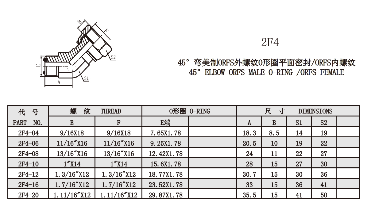 2F4-04,2F4-06,2F4-08,2F4-10,2F4-12,2F4-16,2F4-20,美螺紋O形圈密封接頭