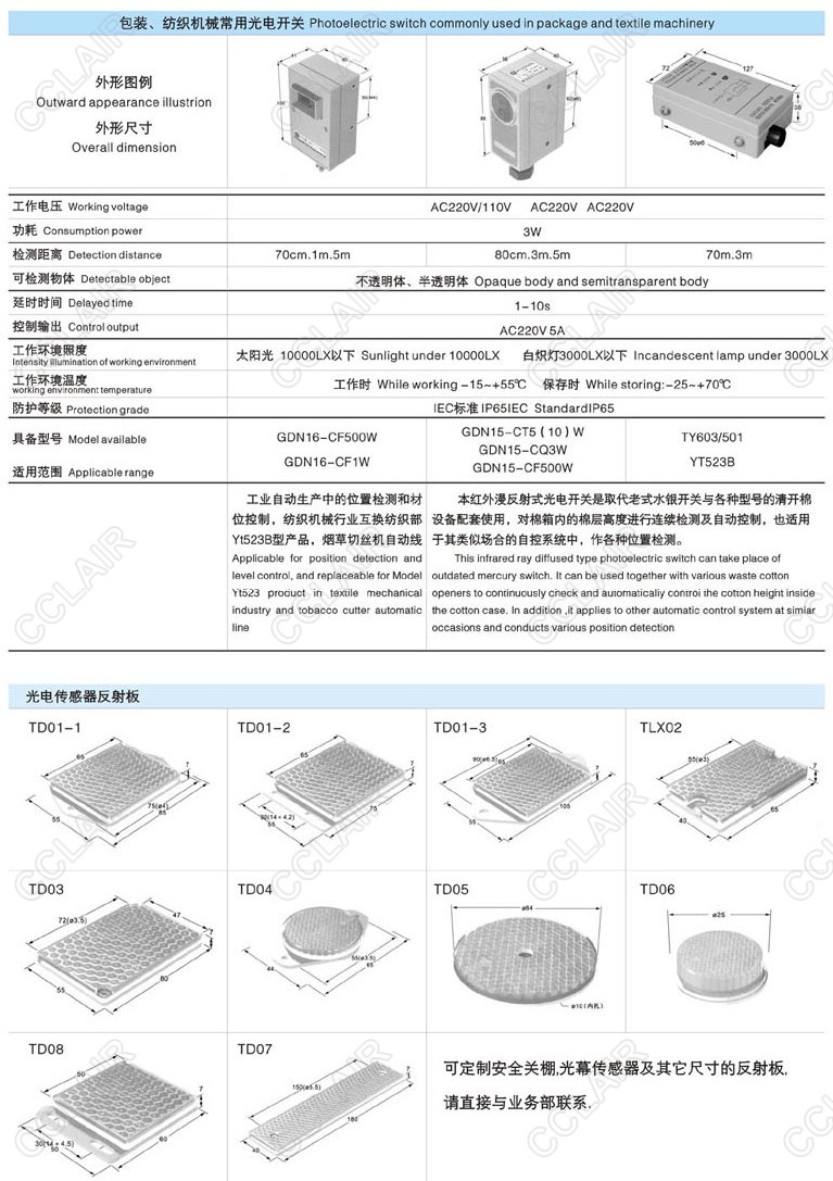 GDN16-CF500W,GDN16-CF1W,GDN15-CT5(10)W,GDN15-CQ3W,GDN15-CF500W,TY603/501,YT523B,光電開(kāi)關(guān)