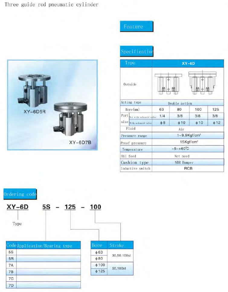 XY-6D5S-63,XY-6D5R-80,XY-6D7A-100,XY-6D7B-125,XY-6D7C-63,XY-6D7D-80,Shinya三導桿氣缸