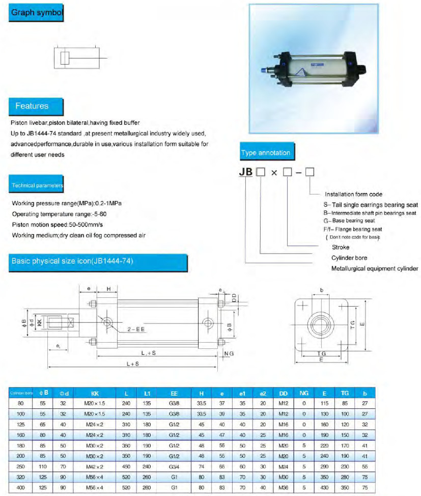 JB80,JB100,JB125,JB160,JB180,JB200,JB250,JB320,JB400,Shinya氣缸