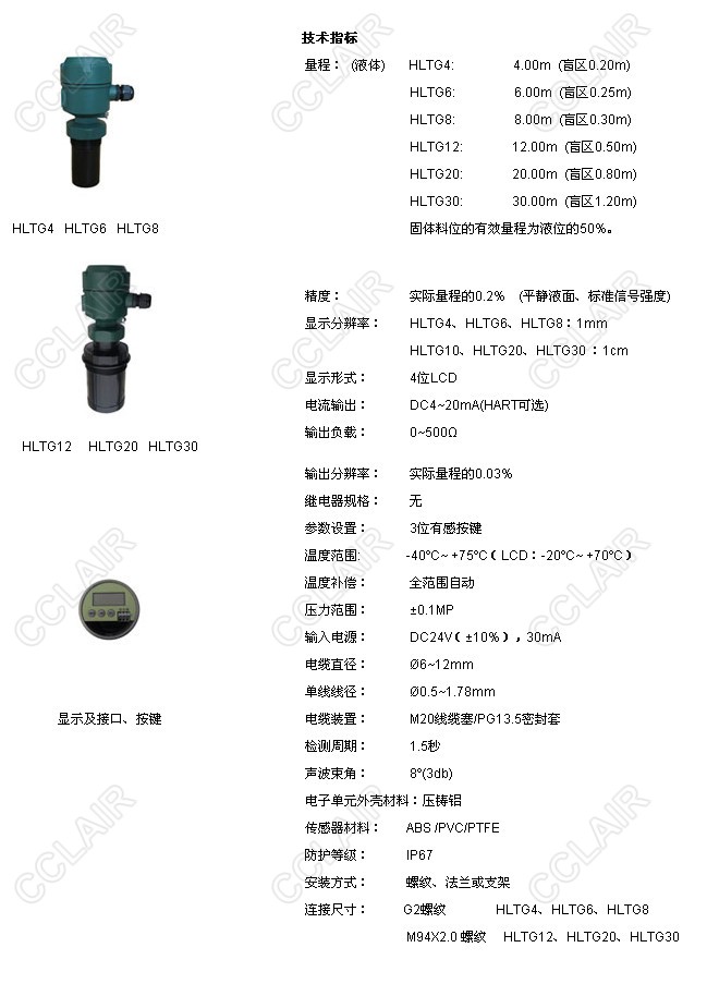 HLTG4,HLTG6,HLTG8,HLTG12,HLTG20,HLTG30,HLTG一體式超聲波物位計