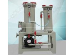 雙塔式過(guò)濾機應用于電鍍、表面處理、金屬精飾、PCB蝕刻設備、制藥環(huán)保等,其主要作用是過(guò)濾化學(xué)溶液,能去除這些溶液中的不溶性顆粒雜質(zhì)。其主要型號有KLX-204、KLX-208、KLX-212、KLX-218等。