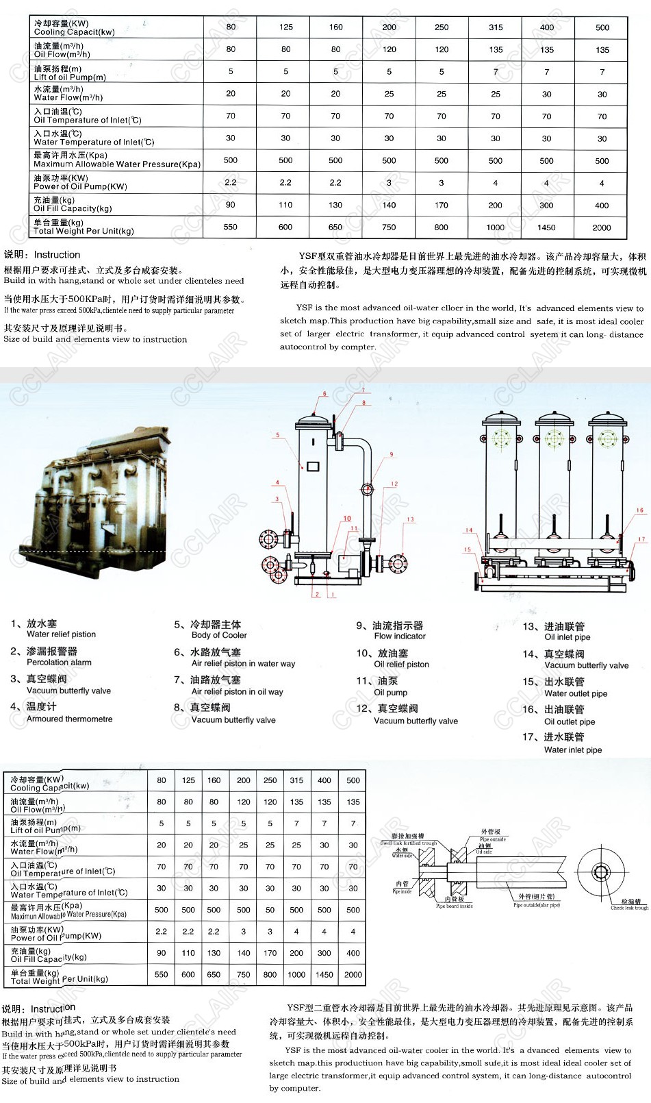 YSF-80,YSF-125,YSF-160,YSF-200,YSF-250,YSF-315,YSF-400,YSF-500,YSF,雙重管強油循環(huán)水冷卻器
