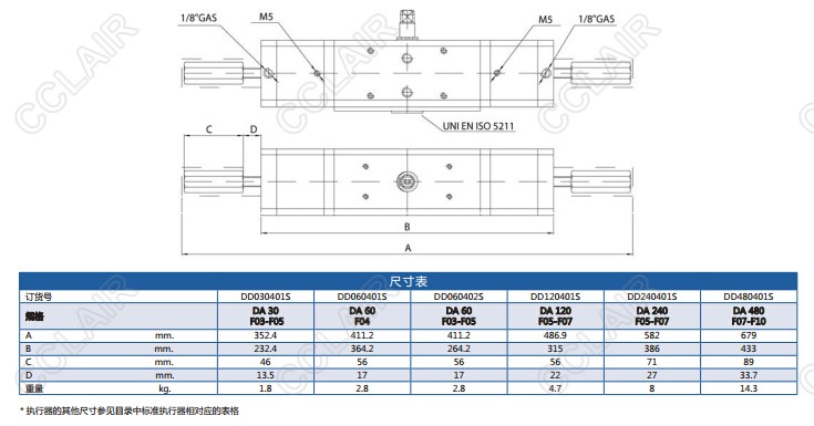 字母DD后面的數字代碼表示在5.6bar氣源壓力下的扭矩。