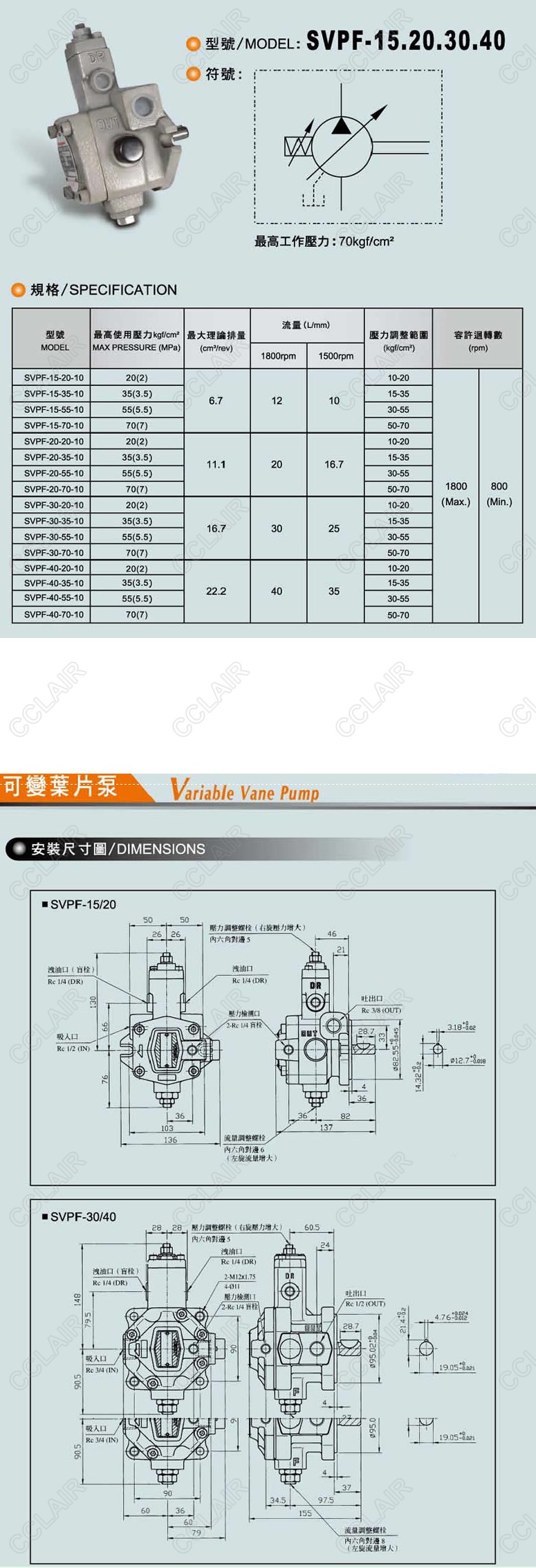 SVPF-15,SVPF-20,SVPF-30,SVPF-40,可變葉片泵FONGTIEN