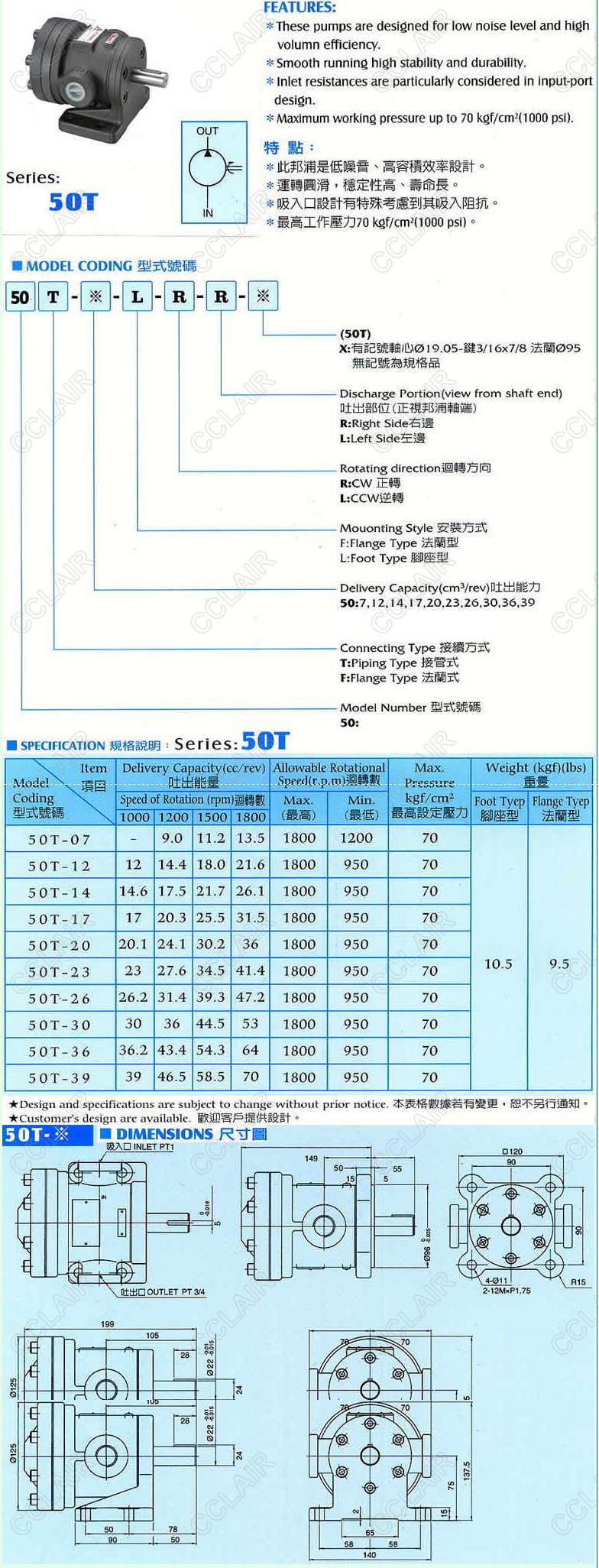 50T-7-F-R-R,50T-17-F-L-R,50T-39-F-L-L,50F-20-F-L-L,50T,固定容量泵浦YEESEN