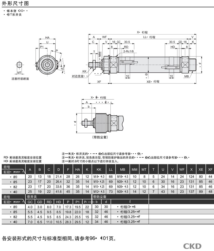 CMK2-M-00-20-25,CMK2-M-00-20-50,CMK2-M-00-20-75,CMK2-M-00-20-100,CMK2-M-00-20-150,CKD緊固型氣缸