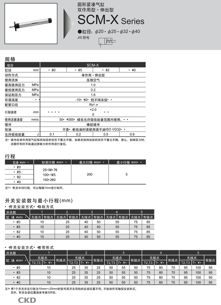 SCM-X-00,SCM-X-LB,SCM-X-FA,SCM-X-FB,SCM-X-CA,SCM-X-TA,SCM-X-TB,CKD圓形緊湊氣缸